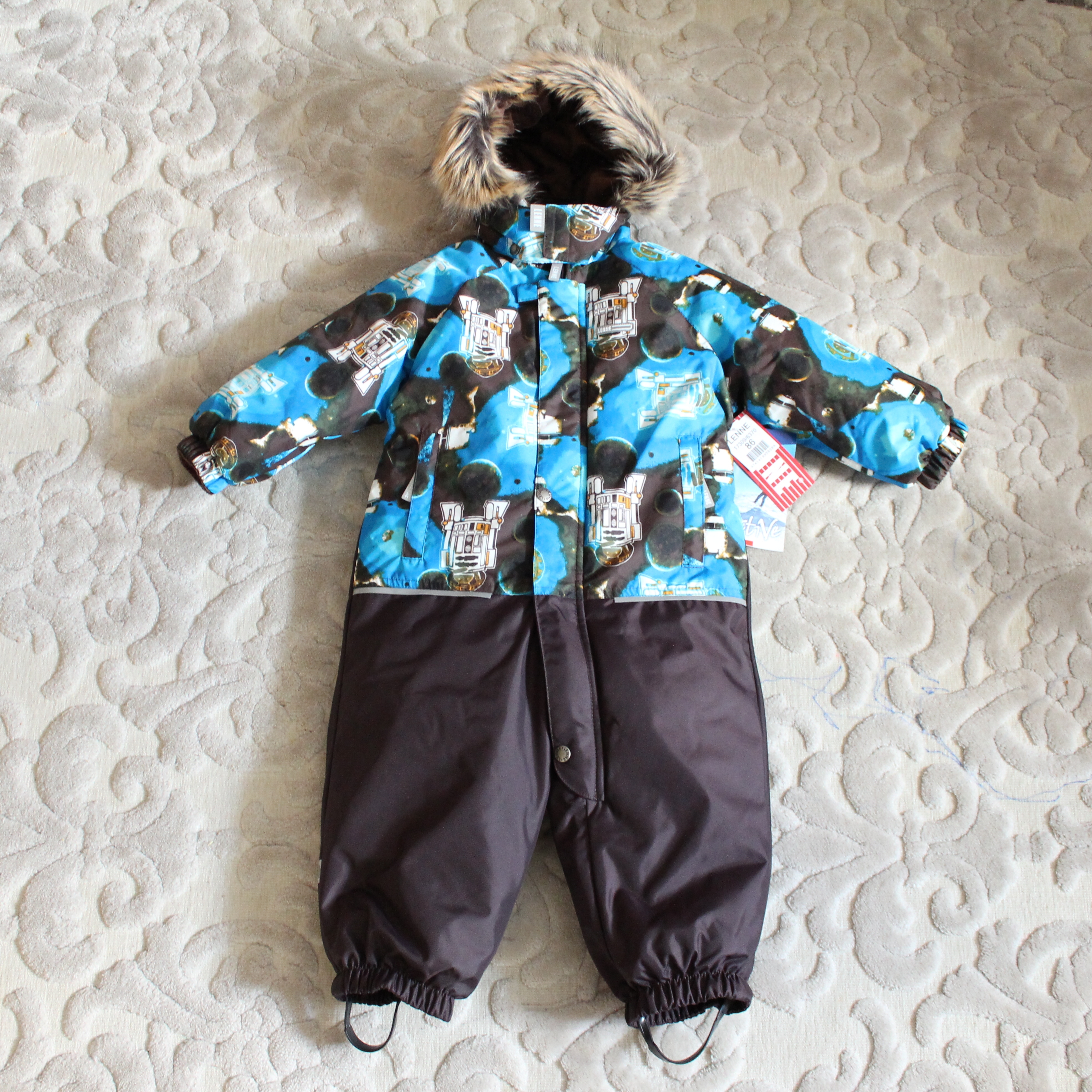 Очень теплый и легкий комбинезон для мальчиков (можно носить до -30 градусов мороза), выполнен в ярких цветах из ткани Active 5000/4000 (ветро- и водонепроницаемая, грязеотталкивающая, но дышащая) из комбинированной ткани: сверху гладкая, нижняя часть в мелкий рубчик, более износостойкая, с проклеенными швами